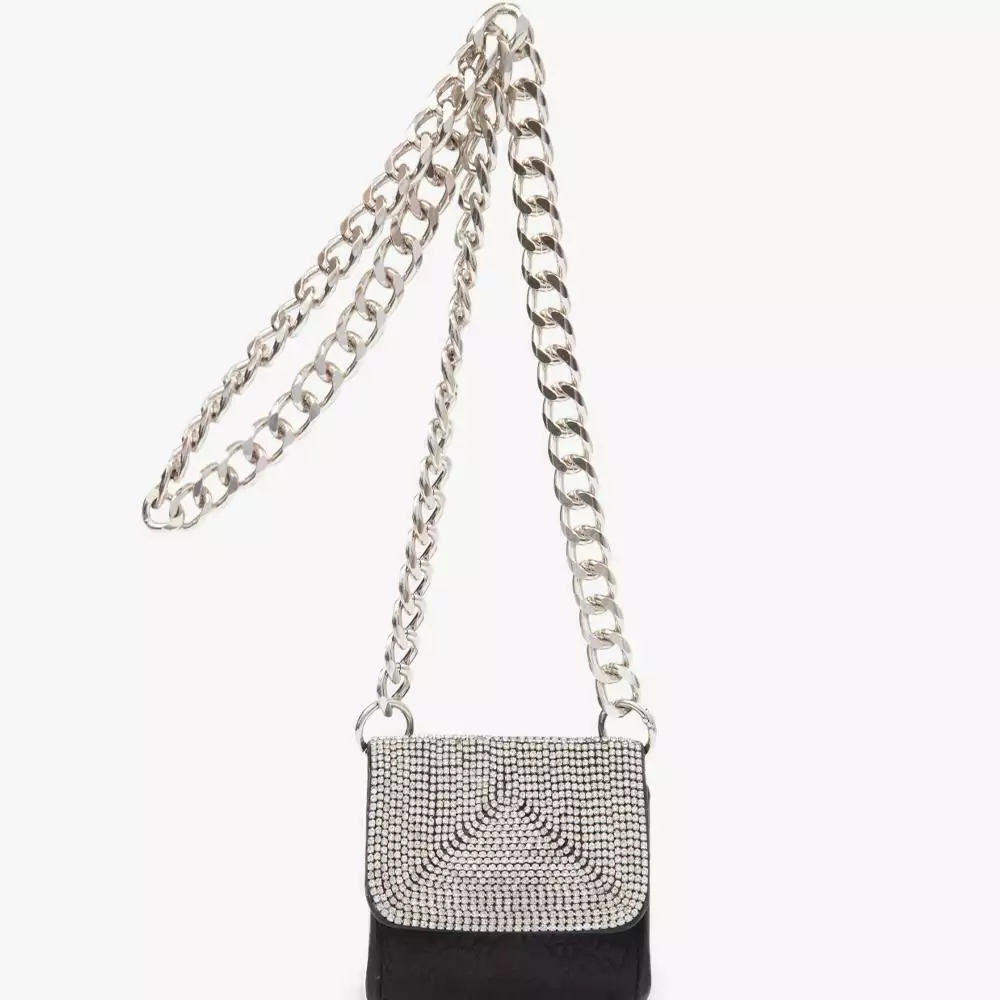 Mini bag detalhada com strass, eleve o estilo e a funcionalidade dos seus looks com a nossa mini bag dupla detalhada com strass. Este acessorio charmoso é ideal para quem busca praticidade sem abrir mão do glamour, perfeito para qualquer ocasião onde voce precise de um toque extra de brilho e elegancia.